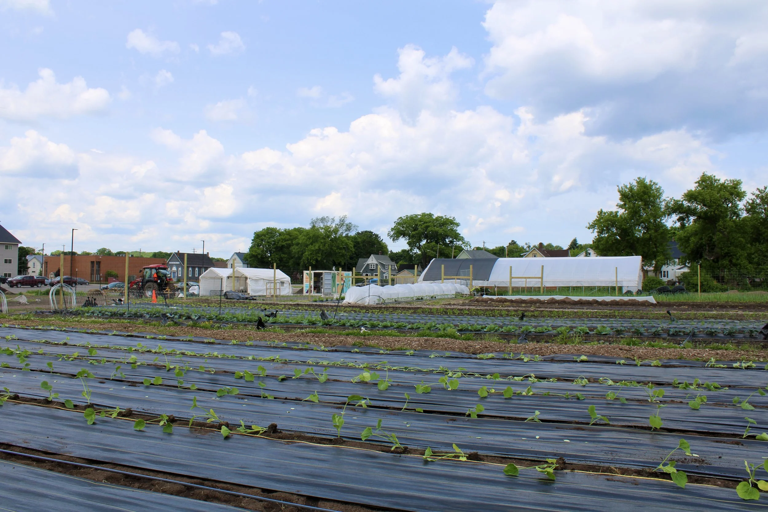 Partridge Creek Community Farm in mid-June. Showing seasonal produce being grown at the farm.