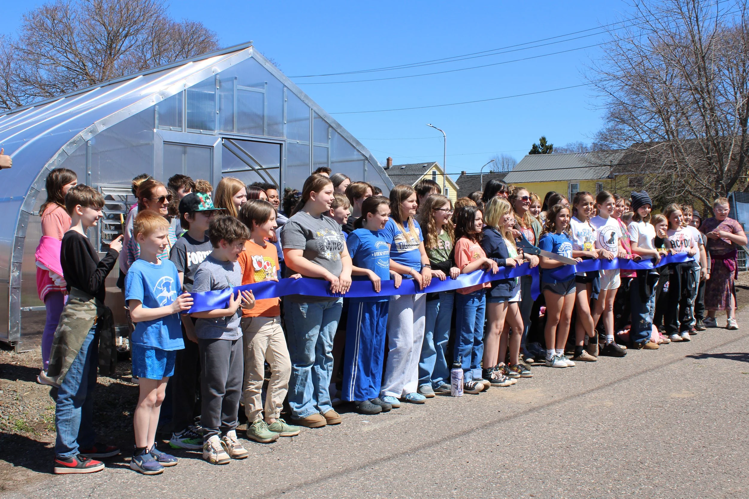 Ishpeming Public School District Students, 5th grade-12th grade cut the ribbon at the Greenhouse. Photo by PCFs Camden Kinnie.