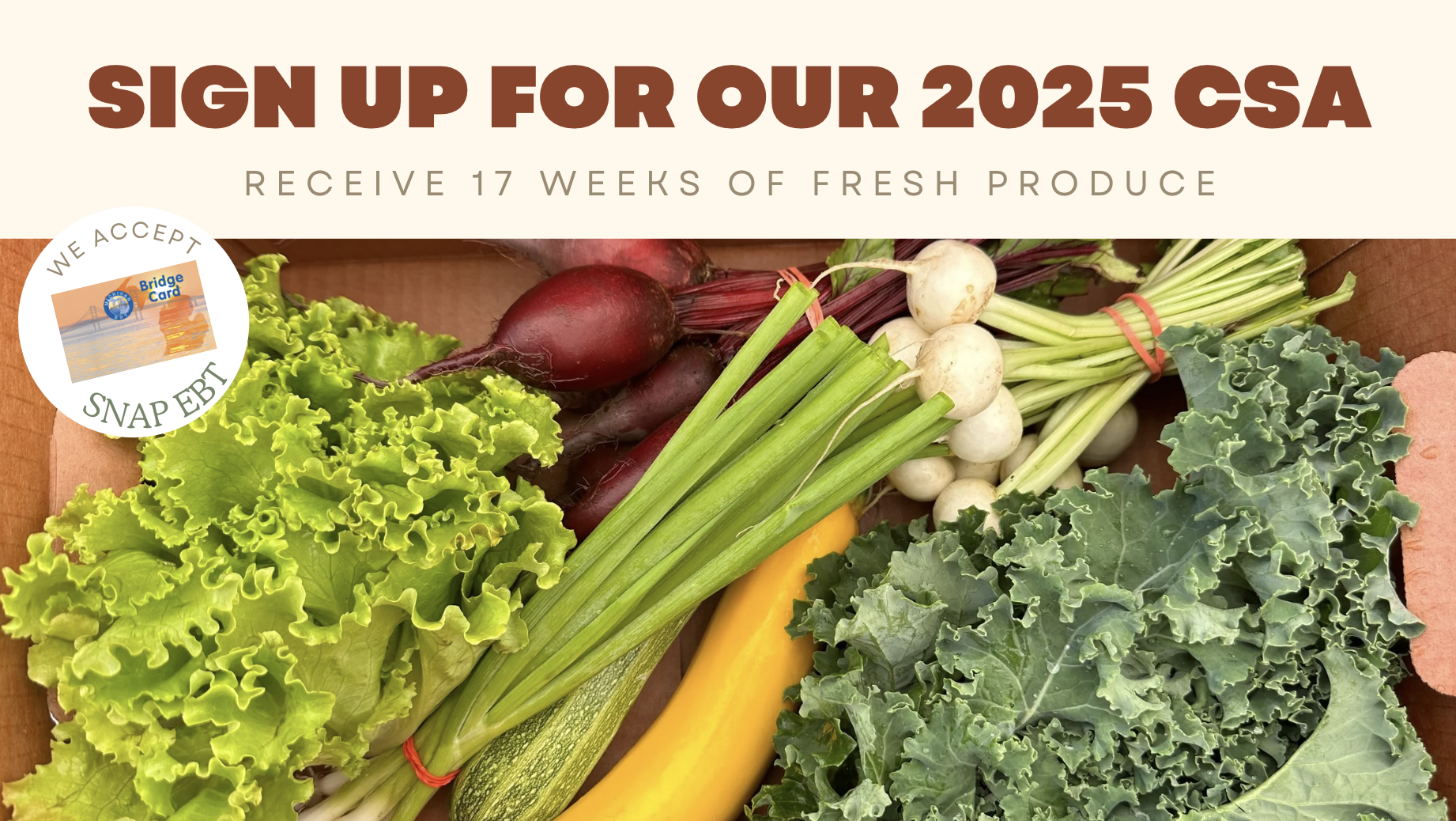 We are thrilled to announce that registration is now open for our 2025 Community Supported Agriculture (CSA) Subscription Box! This subscription provides community members and SNAP/EBT users with a unique opportunity to receive fresh, locally grown produce weekly while directly supporting our mission to enhance local food access and education.
