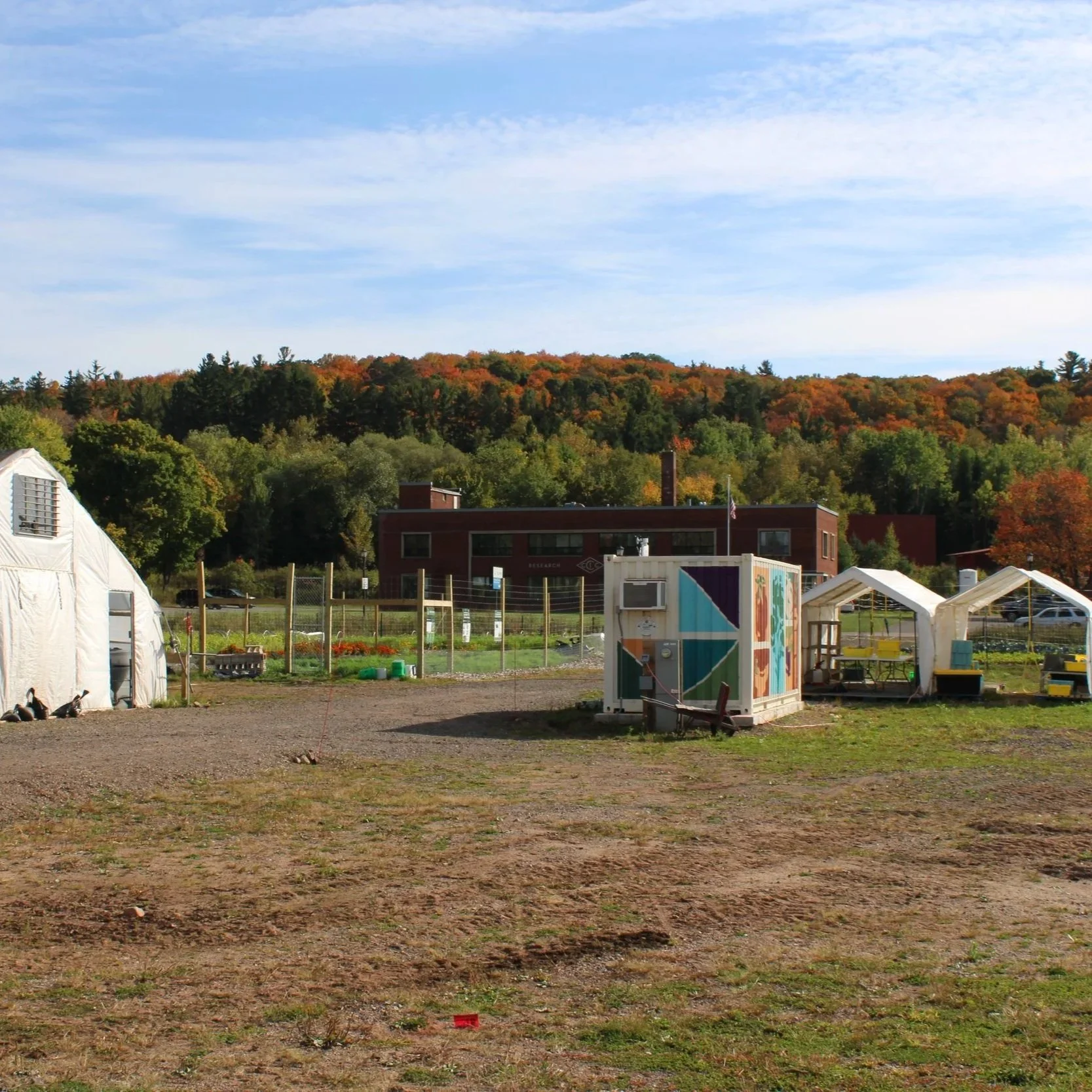 Photo Credit: Photo by PCF’s Camden Kinnie. Pictured at the Community Farm is the hoophouse, produce cooler, wash packs, and beds