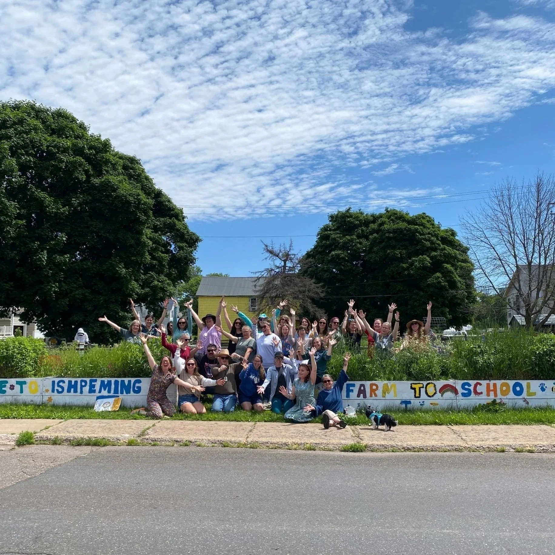 Farm to School Institute attendees pose at the Middle School Garden for a group picture. Photo by Camden Kinnie.