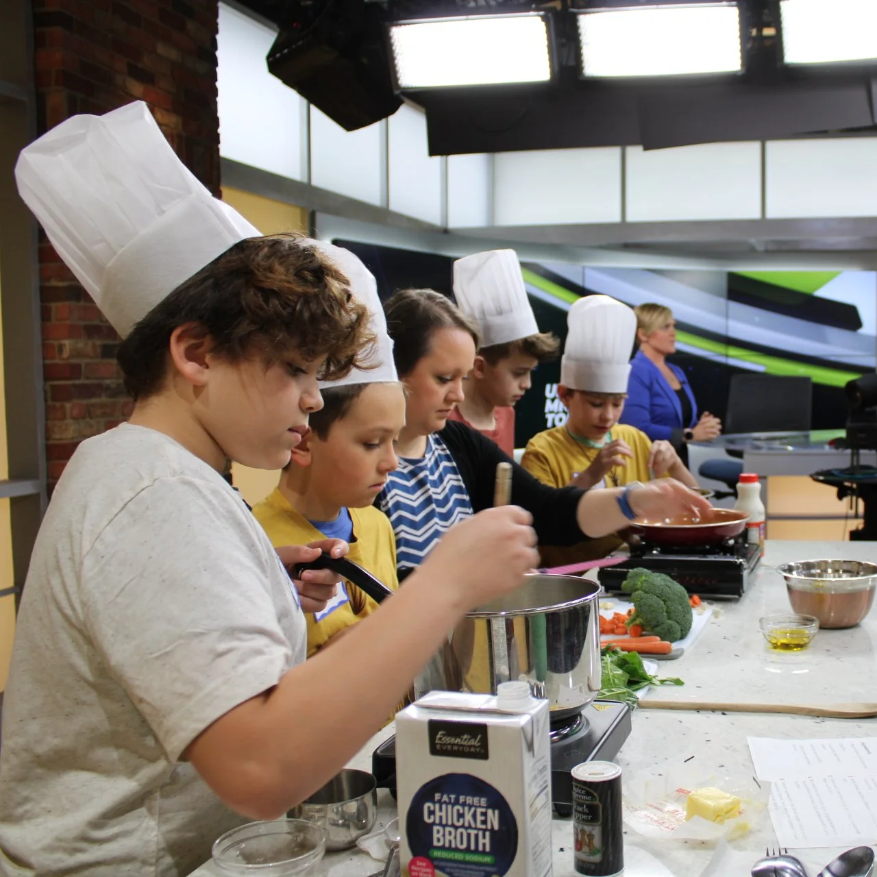 2023 Healthy Cooking students recreate their healthy recipe on TV6 news with the help of their teacher. Photo by PCF’s Camden Kinnie.