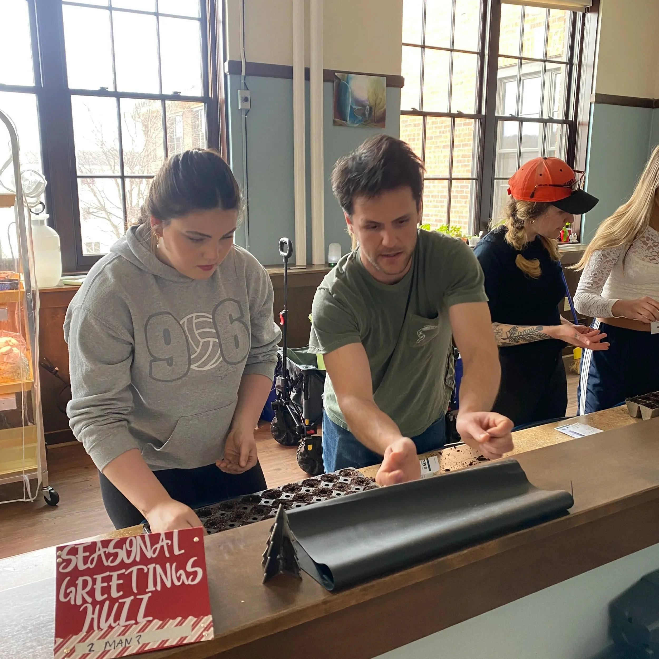 Ishpeming High School Flipping the Food System Students plant seed starts with the PCF growing team. Photo by PCF’s Camden Kinnie.