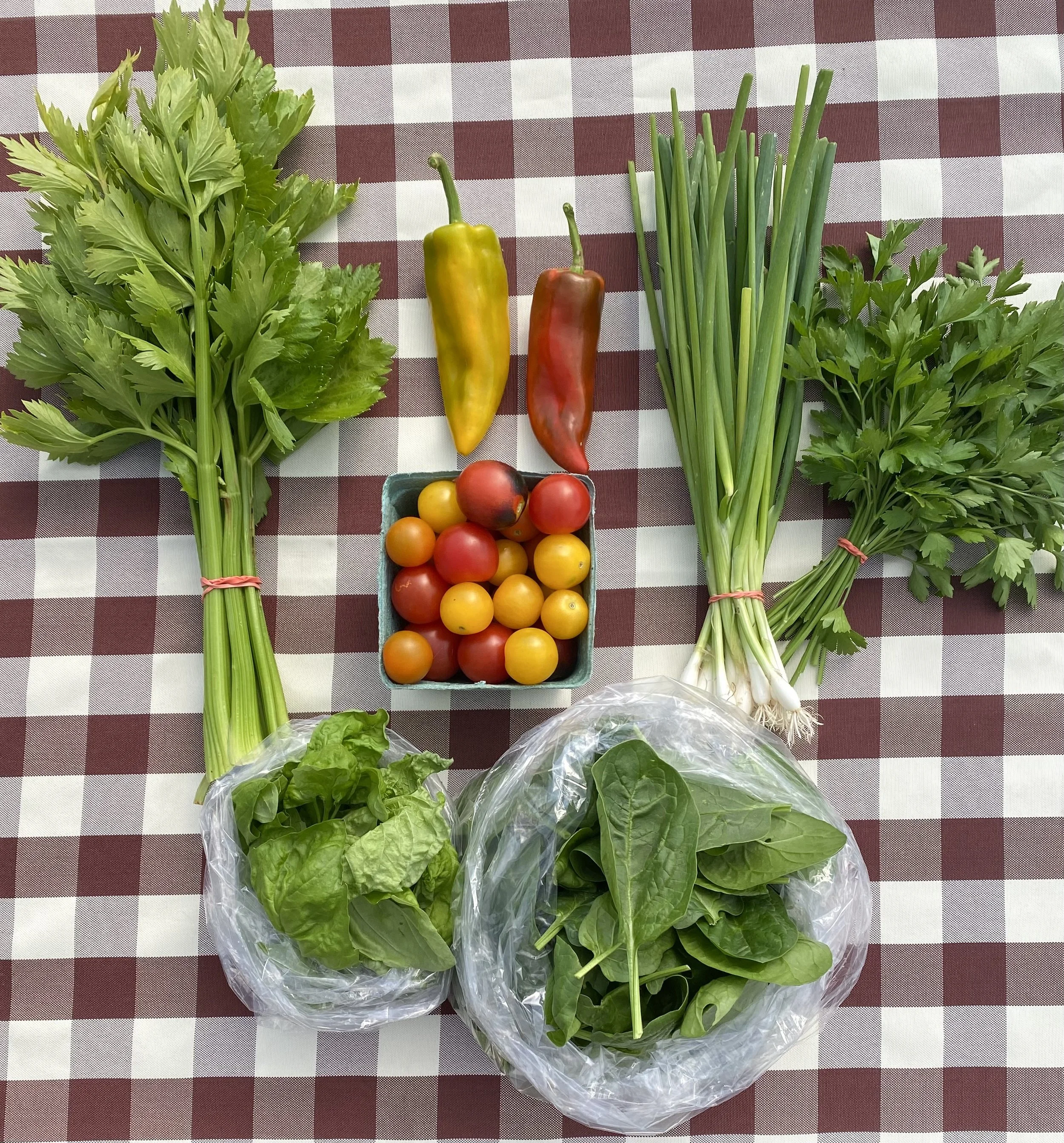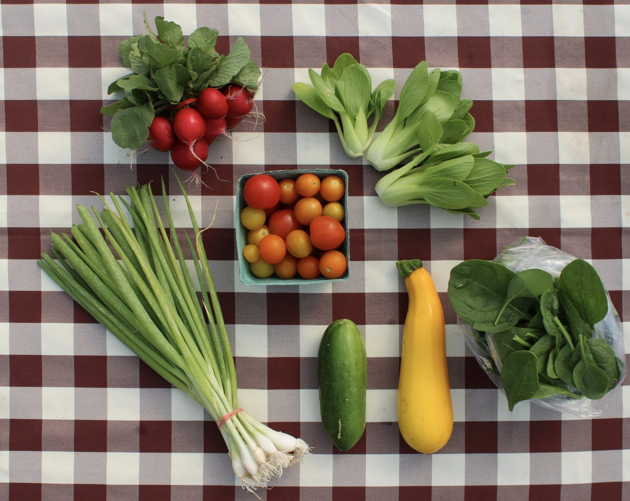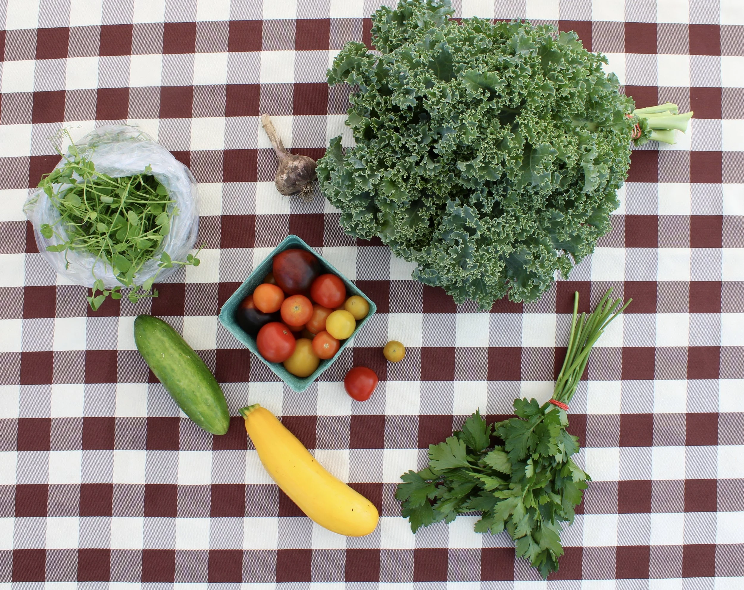 5-7 different seasonal produce items grown at Partridge Creek Community Farm and Garden Sites.