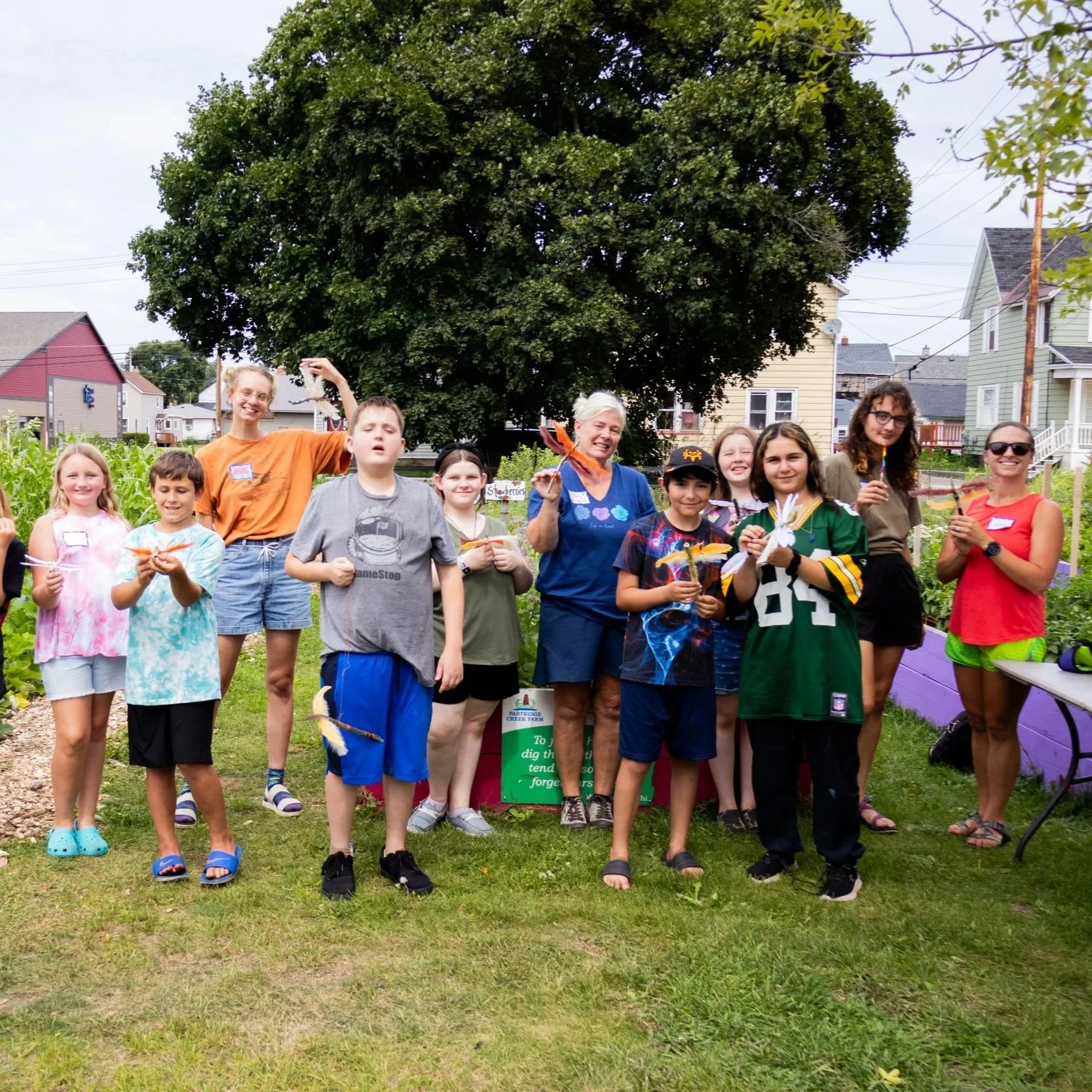 2023 Summer Camp participants pose for a picture in the Middle School Garden. Photo by 2023 Marketing Intern Heather Maurer.